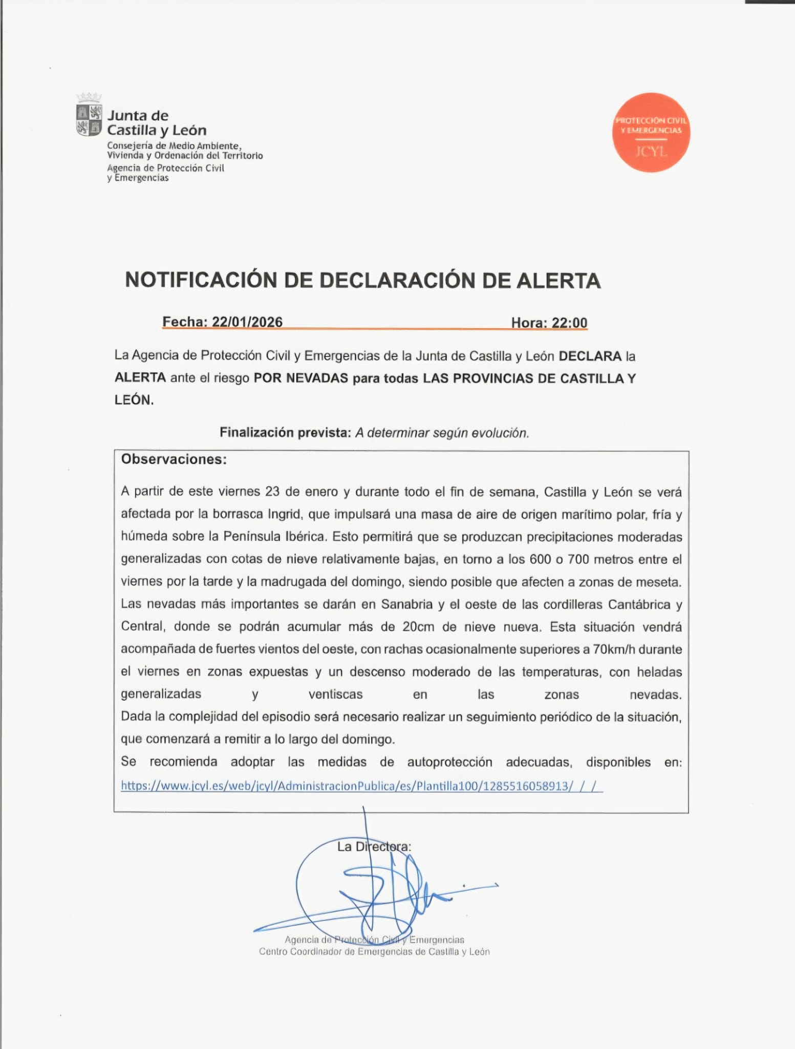 La Junta de Castilla y León ha declarado ALERTA por nevadas para este fin de semana. Desde el Club Deportivo Íscar pedimos máxima precaución a jugadores, familias y aficionados en los desplazamientos. Estaremos atentos a la evolución y comunicaremos cualquier cambio en entrenamientos o partidos. Cuidaos mucho