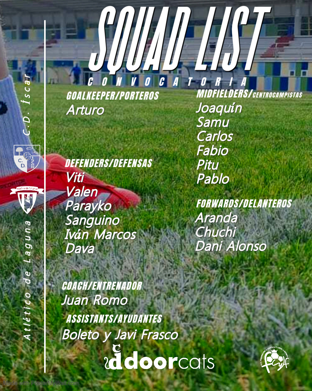 El Club Deportivo Íscar afronta este sábado un difícil compromiso liguero correspondiente a la 17ª jornada, en la que recibirá al Atlético de Laguna en el estadio iscariense. 📅 Fecha: Sábado 24/01/26🏟️ Estadio: San Miguel 🕛 Hora: 18:30 🆚 Atlético Laguna 🔊Convocatoria del partido⏰ 17:30 – Vestuario ✅ Convocados 1 Arturo2 Pablo Muñoz3 Dava4 Valentín5Sigue leyendo "Convocatoria vs Atlético de Laguna"