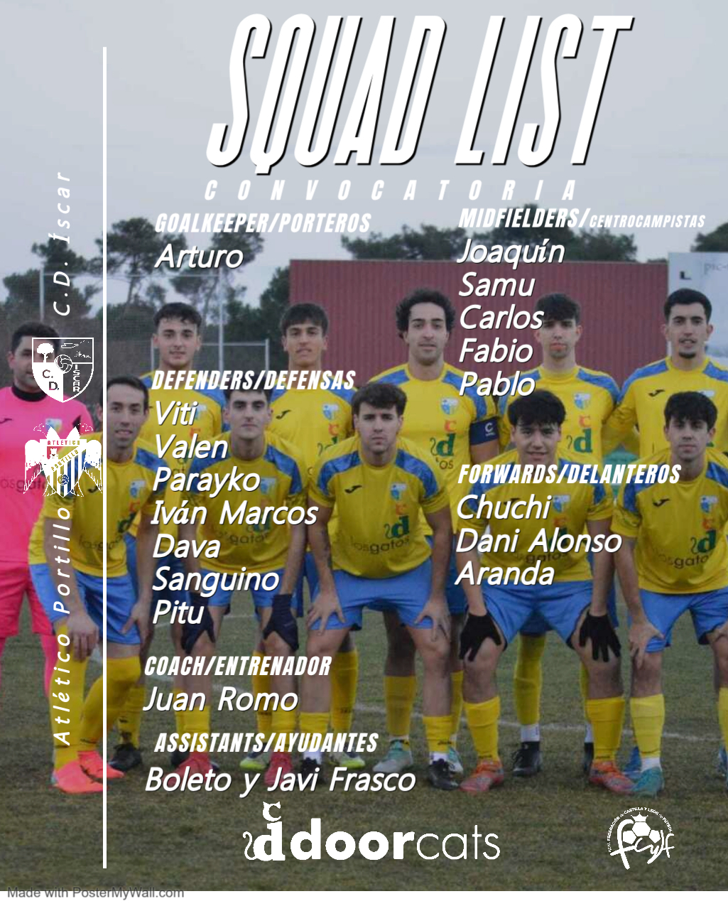 El Club Deportivo Íscar ya tiene convocatoria para el encuentro de la 22ª jornada de liga frente al Atlético Portillo. 📅 Fecha: Sábado 28/02/26🏟️ Estadio: San Miguel 🕛 Hora: 18:30 🆚 Atlético Portillo 🔊Convocatoria del partido⏰ 17:30 – Vestuario ✅ Convocados 1 Arturo2 Pablo Muñoz3 Dava4 Valentín5 Chuchi6 Fabio7 Viti8 Iván9 Samuel10 Pitu11 Sanguino12 Carlos13Sigue leyendo "Convocatoria vs Portillo"