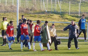 Por suerte salió del campo por su propio pie y la suerte fue doble ya que Aaron lanzó el penalti fuera y el marcador, minuto 88, se quedó igual.