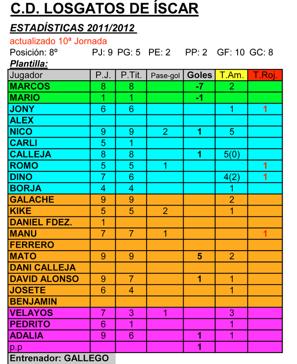 Tras las primeras 10 jornadas de Liga, el Íscar, con 9 partidos jugados, se encuentra en una meritoria 8ª posición a 3 puntos del 4º lugar y como decimos, con un partido menos.