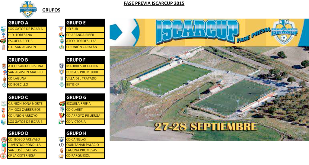 Grupos y Calendario de la Fase Previa de la Iscar Cup 2015 Publicado porcdiscar10 Sep 201429 Sep 2014Publicado en Cantera, Club, IscarcupEtiquetas:calendario, fase previa, grupos, iscarcup 2015 PATROCINADO POR: SAMSUNG patrocina la Iscar Cup Compartir esto: Compartir en Facebook (Se abre en una ventana nueva) Facebook Compartir en WhatsApp (Se abre en una ventana nueva) WhatsApp Compartir en X (Se abre en una ventana nueva) X Más Imprimir (Se abre en una ventana nueva) Imprimir Email a link to a friend (Se abre en una ventana nueva) Correo electrónico Me gusta Cargando... Relacionado