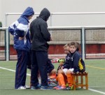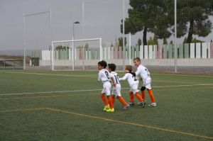 Después del descanso, un balón en largo en conducción de Dani Herrrero acabó con una falta a favor nuestra. Denis se encargó de tirar la falta, el mensaje era claro, chutar entre los tres palos, y así fue, Denis chutó, el portero no llegó a blocar y el balón llegó a los pies de Mateo que con un disparó certero superó la portería rival poniendo el 1-0 en el marcador. Primer gol en liga de nuestros pequeños que lo celebraron como si fuera el gol de Iniesta en el Mundial de Sudáfrica. El partido continuó y el dominio nuestro disminuia, empezaba a llover cada vez con más fuerza, hasta que en el minuto 15 tuvimos que meternos en el vestuario. Una vez reanudado el partido, el Cabezón fue mejor y aprovecho que el campo “escupía” y hasta en dos ocasiones dieron a los palos, y ya en una tercera un disparo largo acabo en gol después de dar al palo. Era el 1-1, nadie lo daba por válido, hasta que el arbitro pitó el final. Destacar la actuación de Hugo, nuestro portero, que una vez más dejo unas paradas magníficas.