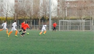 Partido complicado el que hemos jugado. El campo amanecía lleno de nieve y según se iba deshaciendo se iban formando placas de hielo. Con las líneas visibles y con el balón amarillo comenzaba el partido.