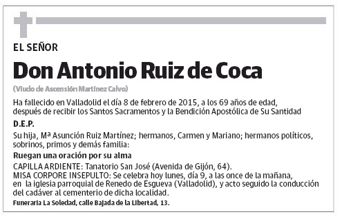 D.E.P. Antonio Ruiz de Coca