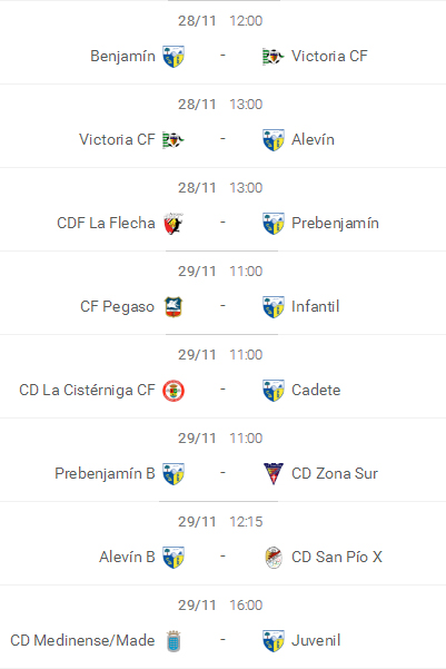El Domingo tenemos cinco equipos en liza, Los tres de fútbol-11, Juvenil, Cadete e Infantil, que juegan fuera complicados partidos ante Made, La Cistérniga y Pegaso, respectivamente.