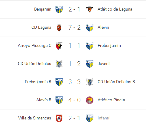 El sábado se disputaban 3 encuentros que se saldaban con una abultada derrota del Alevín en Laguna, la victoria del Benjamín por la mínima ante el Atlético Laguna y el empate a uno del Prebenjamín en el campo del Arroyo Pisuerga que le permite mantener el liderato al concluir la 1ª vuelta.