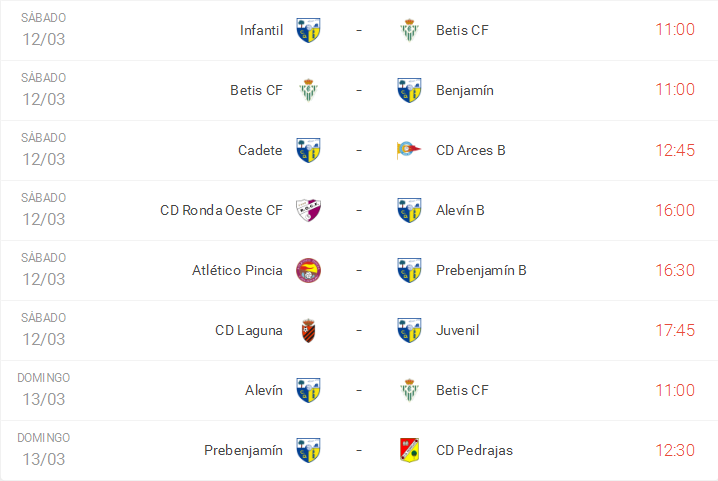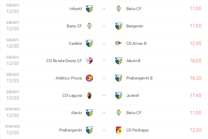 Horarios 12 y 13 de marzo Publicado porcdiscar11 Mar 201611 Mar 2016Publicado en CanteraEtiquetas:27-28-febrero, Horarios Estos son los horarios para este próximo fin de semana Compartir esto: Compartir en Facebook (Se abre en una ventana nueva) Facebook Compartir en WhatsApp (Se abre en una ventana nueva) WhatsApp Compartir en X (Se abre en una ventana nueva) X Más Imprimir (Se abre en una ventana nueva) Imprimir Email a link to a friend (Se abre en una ventana nueva) Correo electrónico Me gusta Cargando... Relacionado