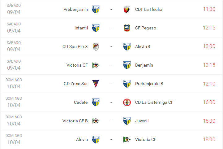 Estos son los horarios de los partidos de nuestros equipos para este próximo fin de semana: