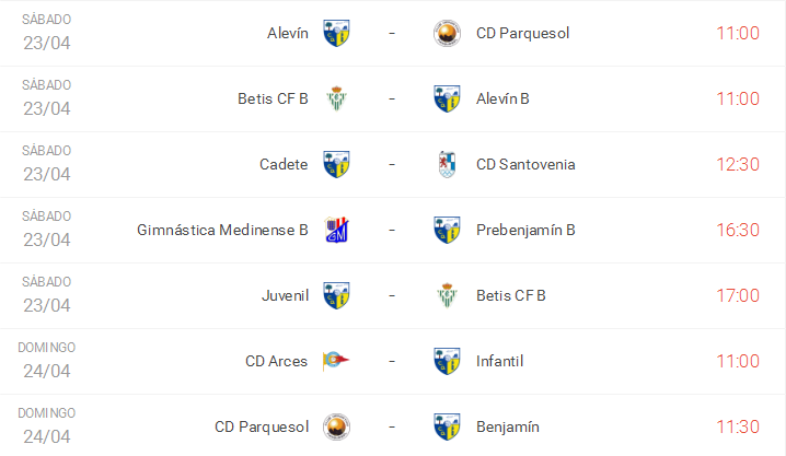 Estos son los horarios de los partidos de nuestros equipos para este próximo fin de semana: