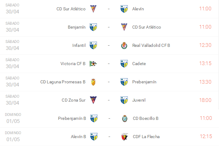 Estos son todos los horarios de los partidos de nuestros equipos para este próximo fin de semana: