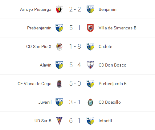 En las demás categorías, victorias el sábado del Prebenjamín ante el Villa de Simancas y del Alevín ante Don Bosco. Empate del Benjamín en Arroyo y derrota del Prebenjamín B en Viana de Cega.
