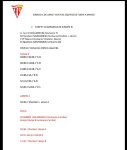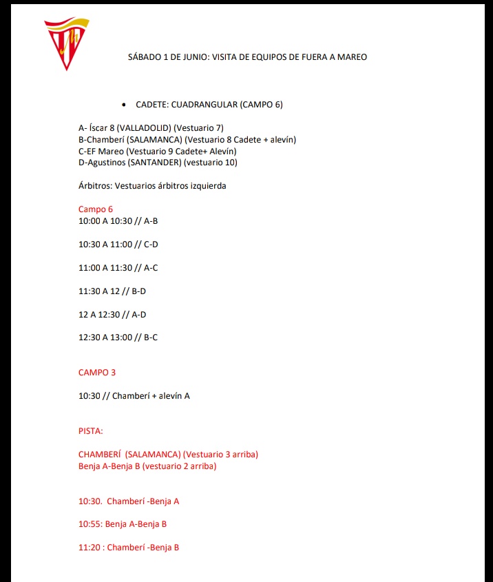 El Cadete disputará un «mini» torneo en las instalaciones de Mareo en Gijón donde se enfrentará al Chamberí de Salamanca a la Escuela de Fútbol de Mareo y al Agustinos de Santander en formato de cuadrandular, todos contra todos en partidillos de 30 minutos.
