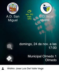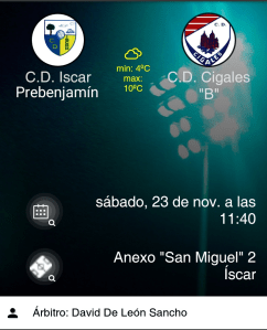 Horarios 9ª jornada Publicado porcdiscar23 Nov 201928 Nov 2019Publicado en CanteraEtiquetas:23 y 24 de noviembre, 9 jornada, Horarios Compartir esto: Compartir en Facebook (Se abre en una ventana nueva) Facebook Compartir en WhatsApp (Se abre en una ventana nueva) WhatsApp Compartir en X (Se abre en una ventana nueva) X Más Imprimir (Se abre en una ventana nueva) Imprimir Email a link to a friend (Se abre en una ventana nueva) Correo electrónico Me gusta Cargando... Relacionado