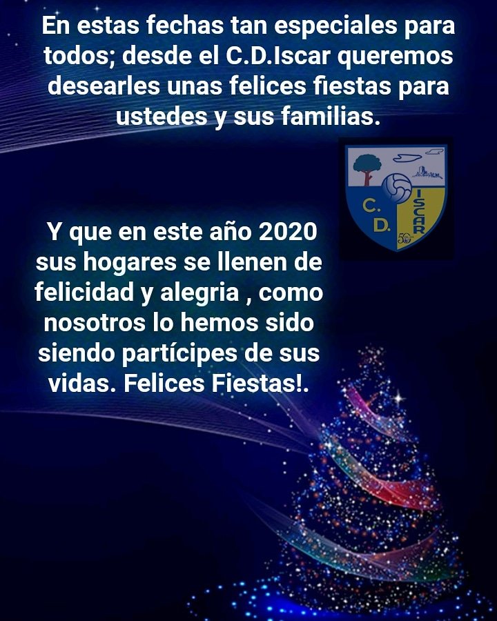 En estas fechas tan especiales para todos; desde el C.D.Iscar queremos desearles unas felices fiestas para ustedes y sus familias.