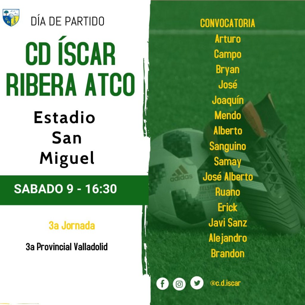 Esta es la convocatoria del C.D.Iscar Aficionado para el partido frente al Ribera Atlético, de la tercera jornada de Liga, que se disputará en el estadio de San Miguel (sábado, 16:30).