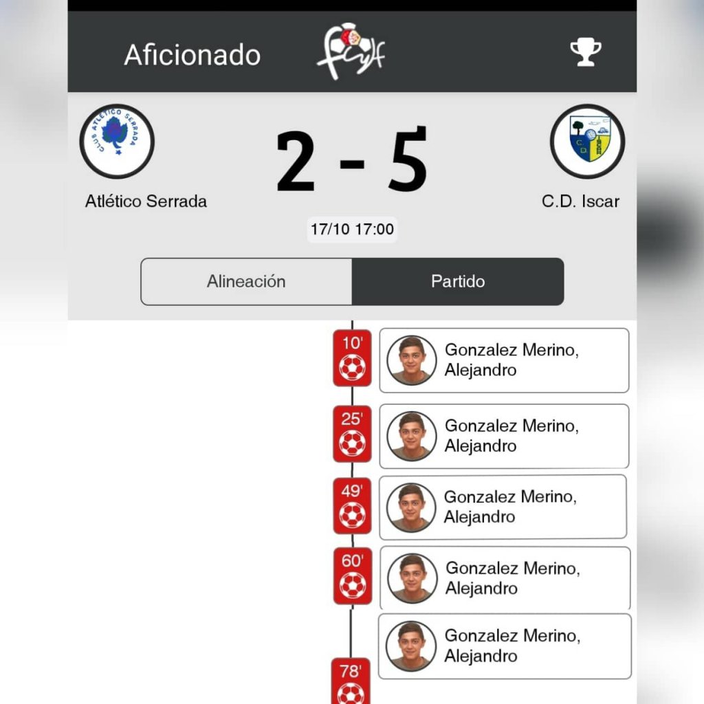 Victoria del Íscar en Serrada, más apurada de lo que aparece en el marcador, ante un rival que en teoría era, hasta la fecha, el peor del campeonato y que no debía haber opuesto mucha resistencia. Al final lo que cuenta es el resultado y sobre eso no hubo discusión, sobre todo por los 5 goles que marcó Alejandro.