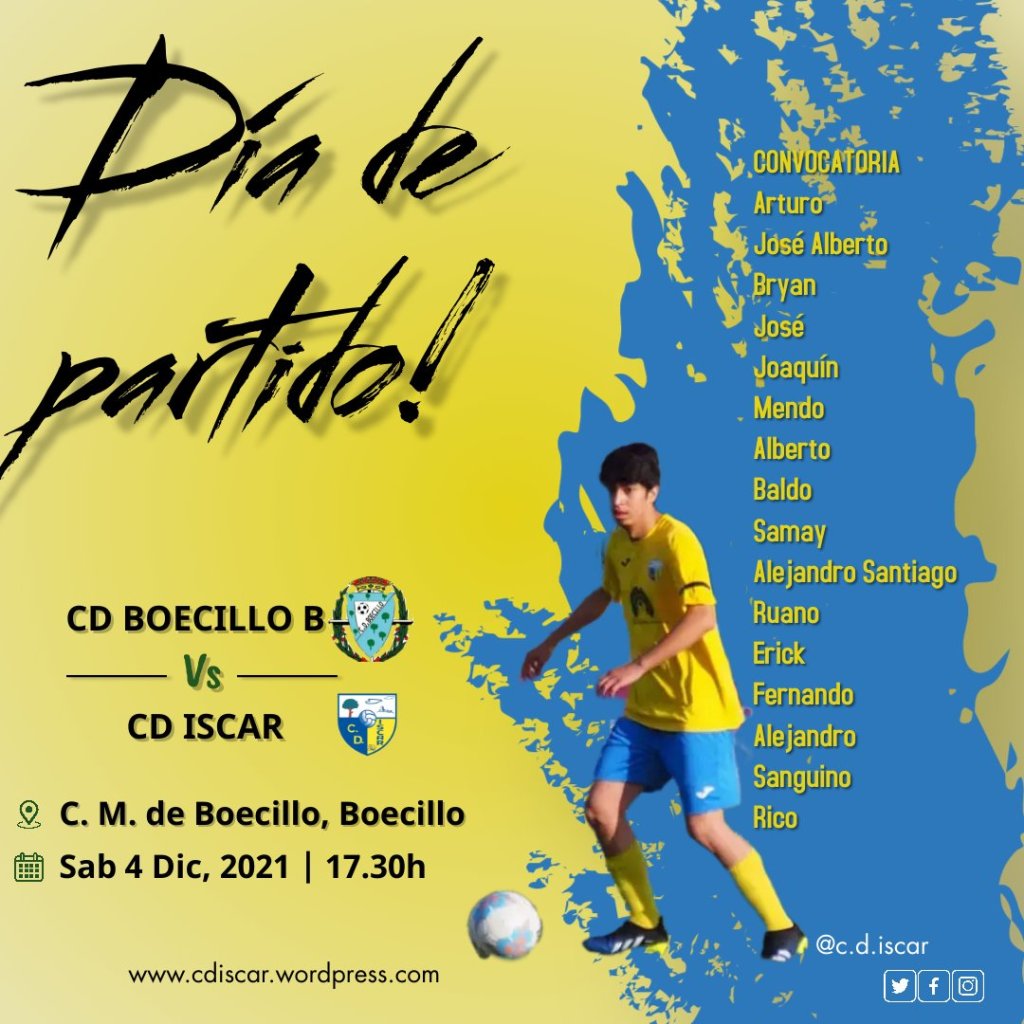 Esta es la convocatoria del Club Deportivo Iscar Aficionado para el partido frente al Club Deportivo Boecillo, que es quinto en la clasificación, correspondiente a la undécima jornada de Liga, que se disputará en Boecillo, (sábado, 17:30 h).