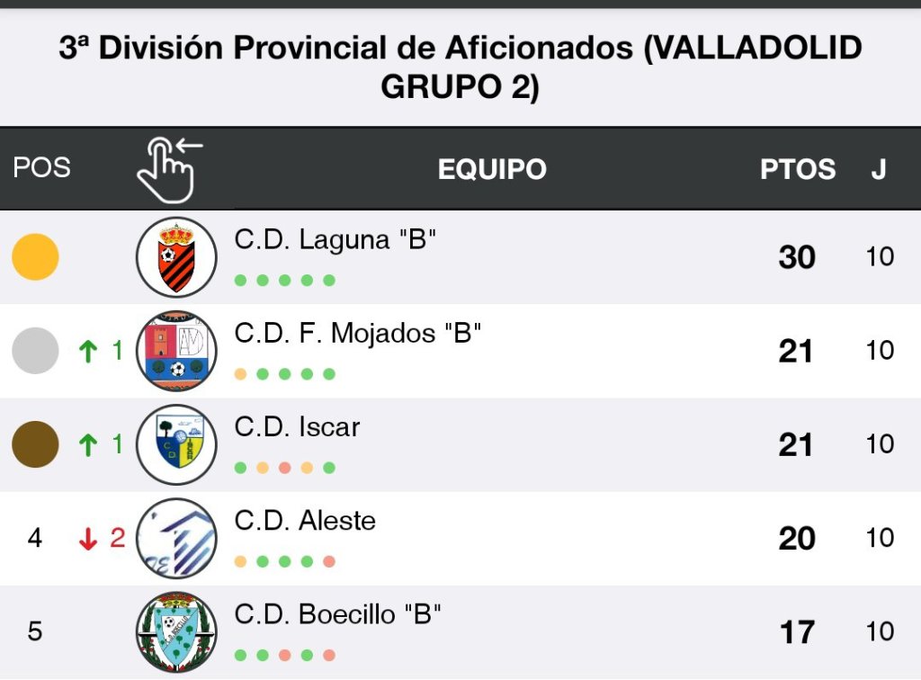 Con este partido se cierra la primera vuelta del campeonato con el Laguna ya casi inalcanzable y el Íscar tercero con 21 puntos a 9 del líder pero empatado con el segundo, Mojados.