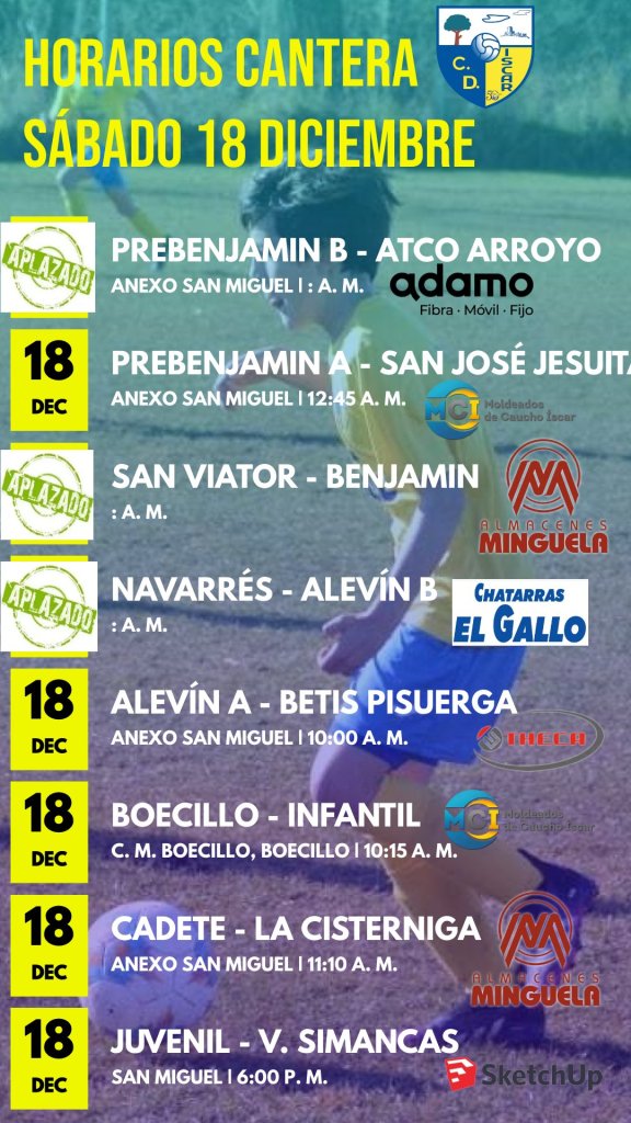 Partidos de la última jornada del año para nuestros equipos los de este próximo sábado 18 de diciembre.