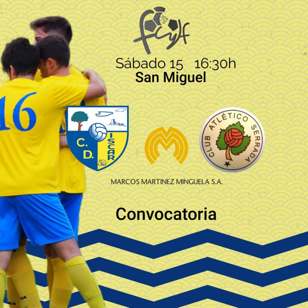 Esta es la convocatoria del Club Deportivo Iscar Aficionado para el partido frente al Atlético Serrada, que ocupa la décima posición, correspondiente a la decimoquinta jornada de Liga, que se disputará en Íscar, en el Estadio San Miguel (sábado, 16:30 h).