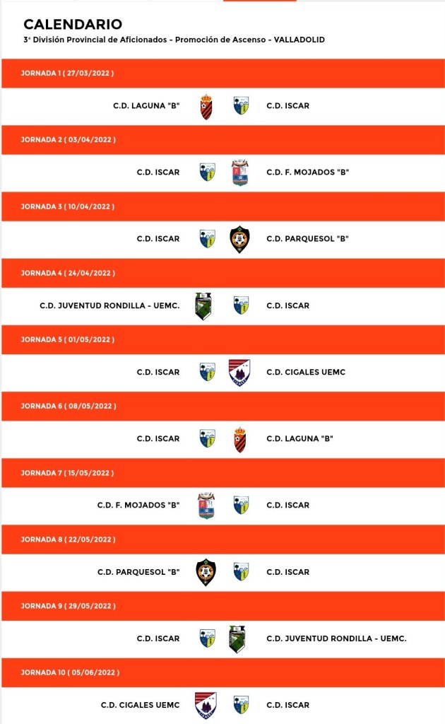 Tras la disputa de la Liga de 3a Provincial Aficionado el C. D. Íscar acabó segundo del grupo 2 y se clasificó para la fase de ascenso a Segunda junto con C. D. Laguna B, campeón, y C. D. Mojados B, tercero y los otros 3 primeros clasificados del Grupo 1: C. D. Juventud Rondilla, C. D. Cigales y C. D. Parquesol B.