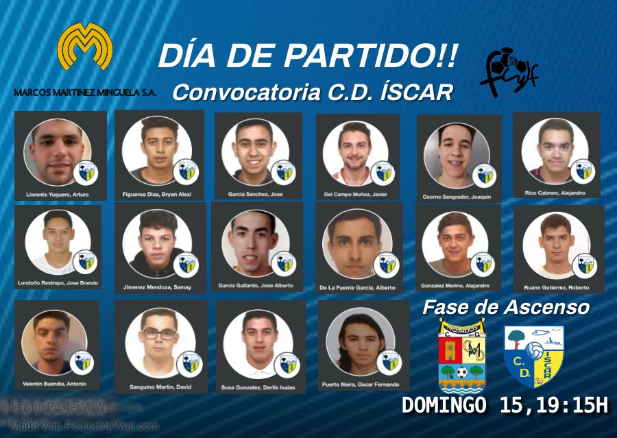 Esta es la convocatoria del Club Deportivo Íscar Aficionado para el partido frente al Mojados de la séptima jornada de la Fase de Ascenso, que se disputará en Mojados (domingo 15, 19:15 h).