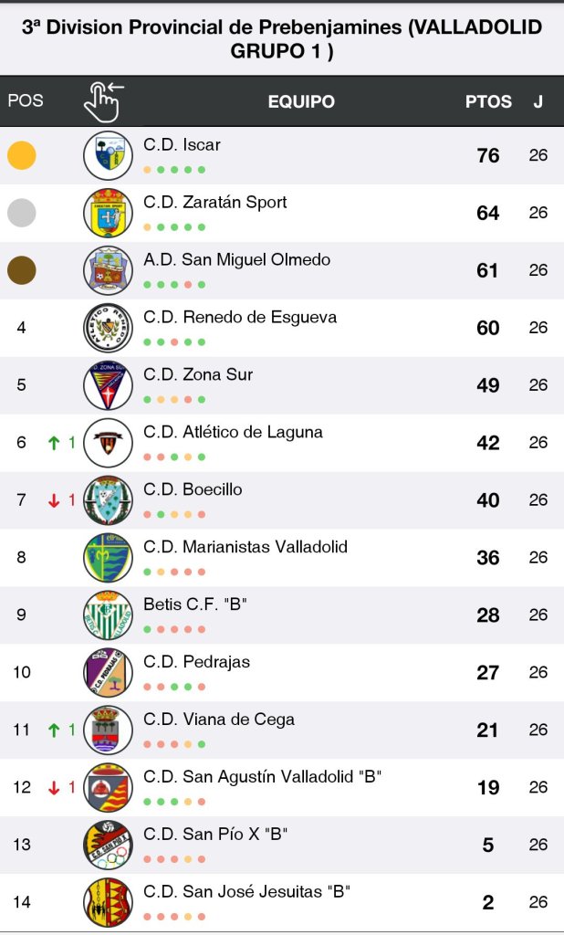 Tras la última jornada jugada el pasado fin de semana por todos los equipos de nuestra Cantera estas son las clasificaciones finales, destacando los títulos de los dos equipos Prebenjamines y el descenso del Alevín A.