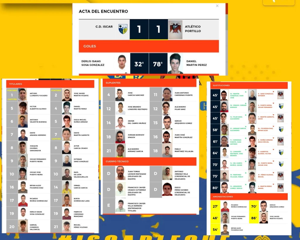 Un renovado CD Íscar empató anoche, en partido de la primera jornada de Liga retrasado al martes, ante el Atlético Portillo donde se adelantaron los amarillos con gol de Derlis en la primera parte y empató el Portillo a poco más de 10 minutos para el final.