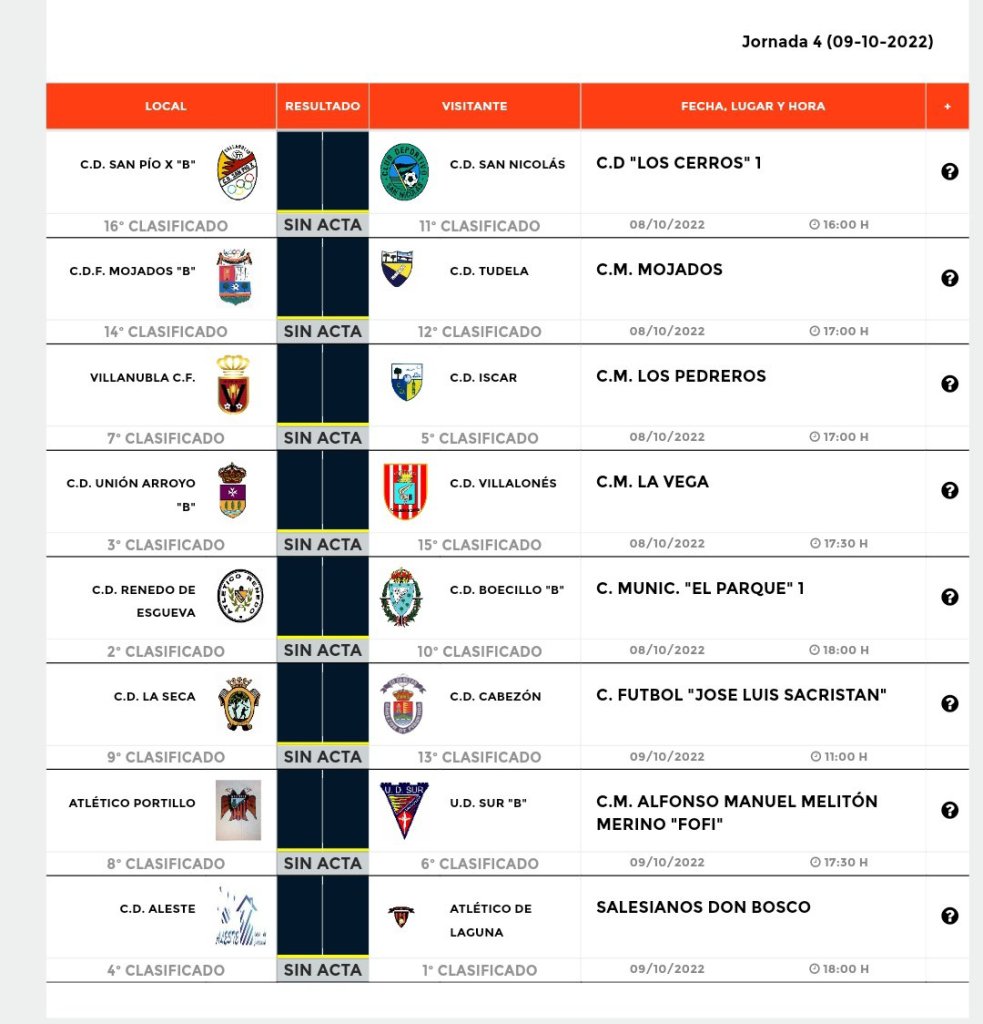 Horarios de la cuarta Jornada de Liga.
