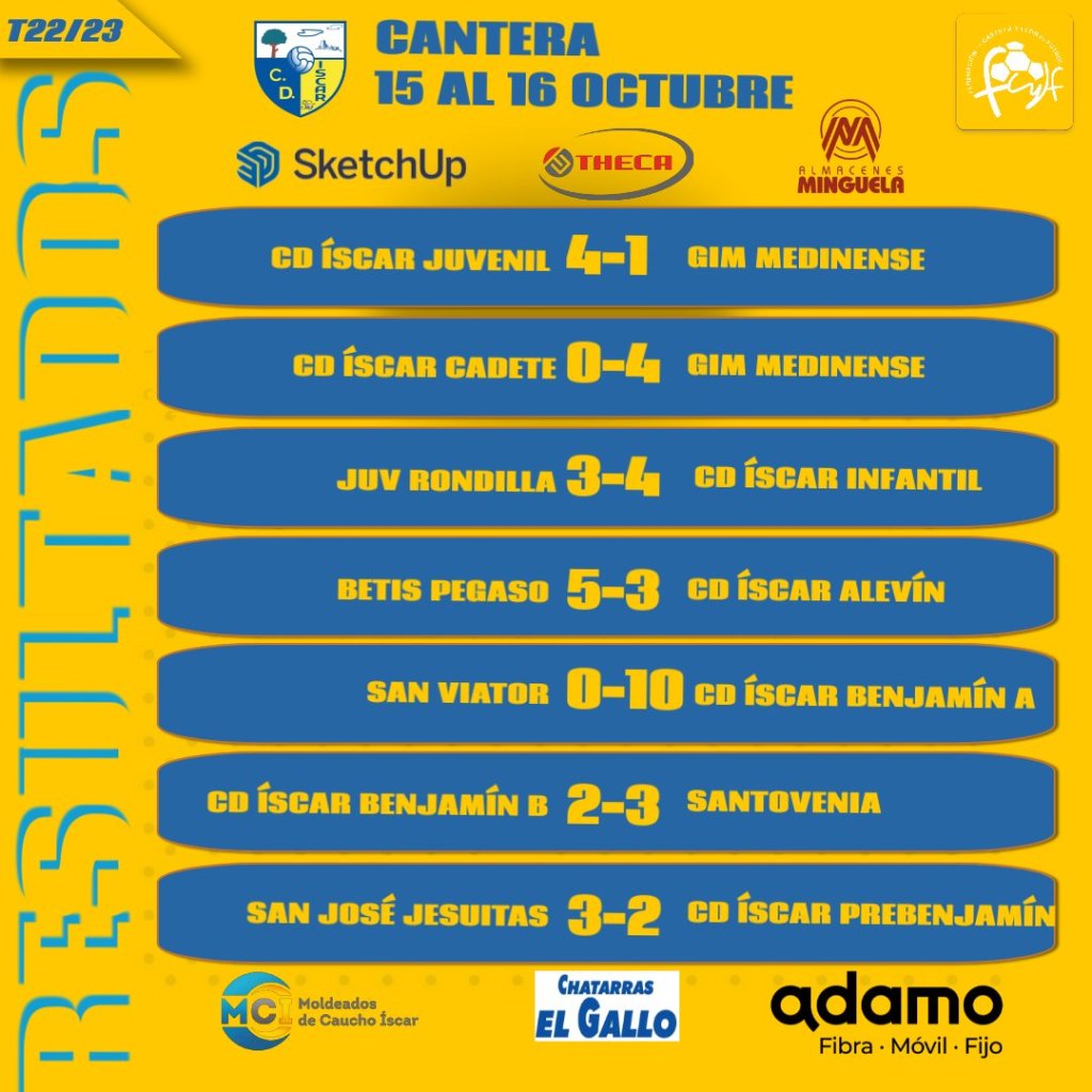 Resultados de nuestros equipos de la Cantera este fin de semana del sábado 15 y el domingo 16 de octubre.