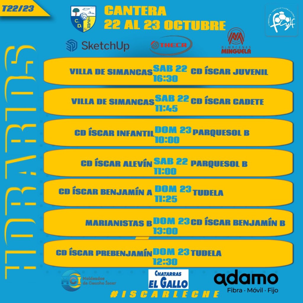 Horarios de los partidos de nuestros equipos de Cantera para este próximo fin de semana del 22 y 23 de octubre correspondientes a la 4ª jornada de Liga.