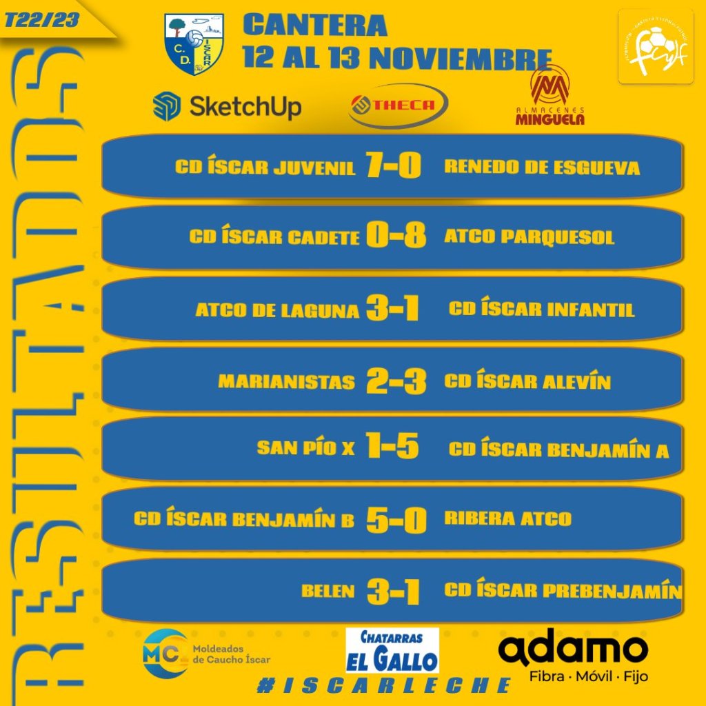 Resultados del fin de semana 12 y 13 de noviembre de los partidos de nuestros equipos de Cantera que jugaron la 7ª jornada de Liga.