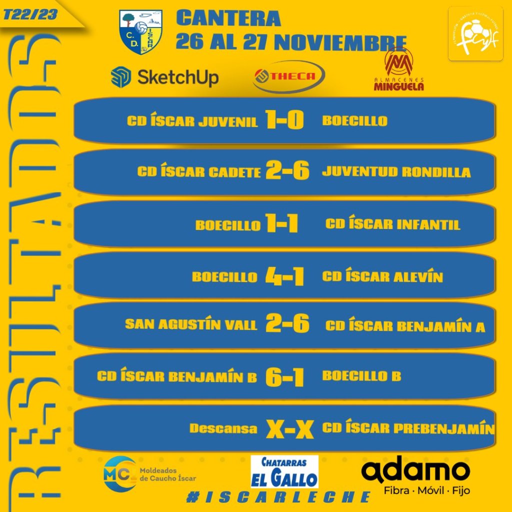 Resultados de la 9ª jornada de Liga disputada este fin de semana del 26 y 27 de noviembre por nuestros equipos de Cantera.