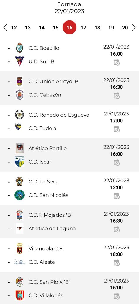 Partidos de la 16ª jornada al completo: