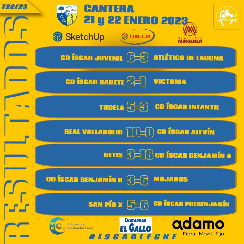 Perdieron el Alevín en los Anexos de Zorrilla ante el Pucela, el Infantil en campo del Tudela 5-3 con hat-trick de Adrián García, y el Benjamín B, que le dio mucha guerra al líder, el Mojados que al final ganó 3-6 en San Miguel. Los goles locales de Ander(2) y Mario.
