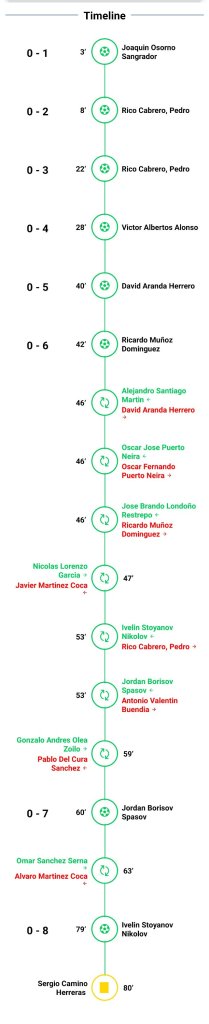 Min 60. Jordan contragolpe y vaselina. Min 79. Ivo remate jugada ensayada. Final 0-8