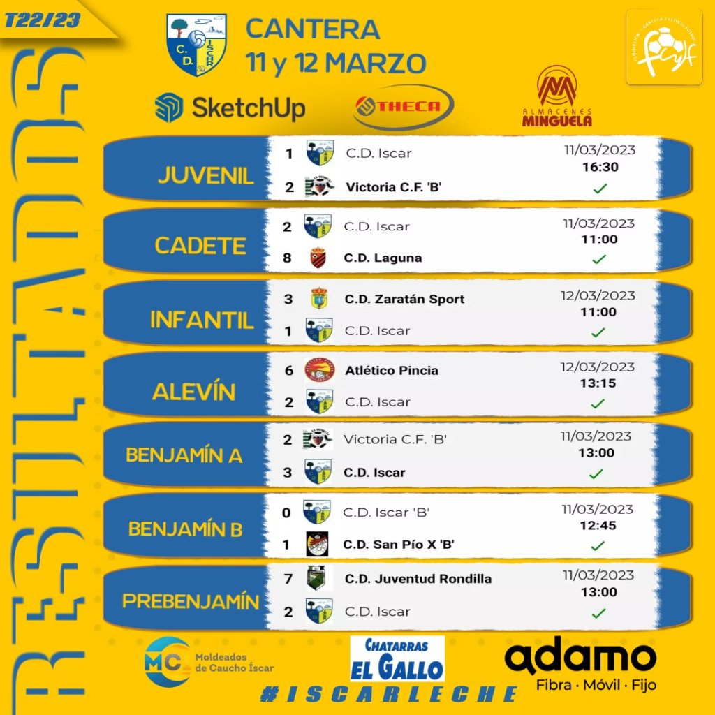 Resultados de nuestros equipos en la 19ª jornada que se ha jugado el fin de semana del 11 y 12 de marzo.