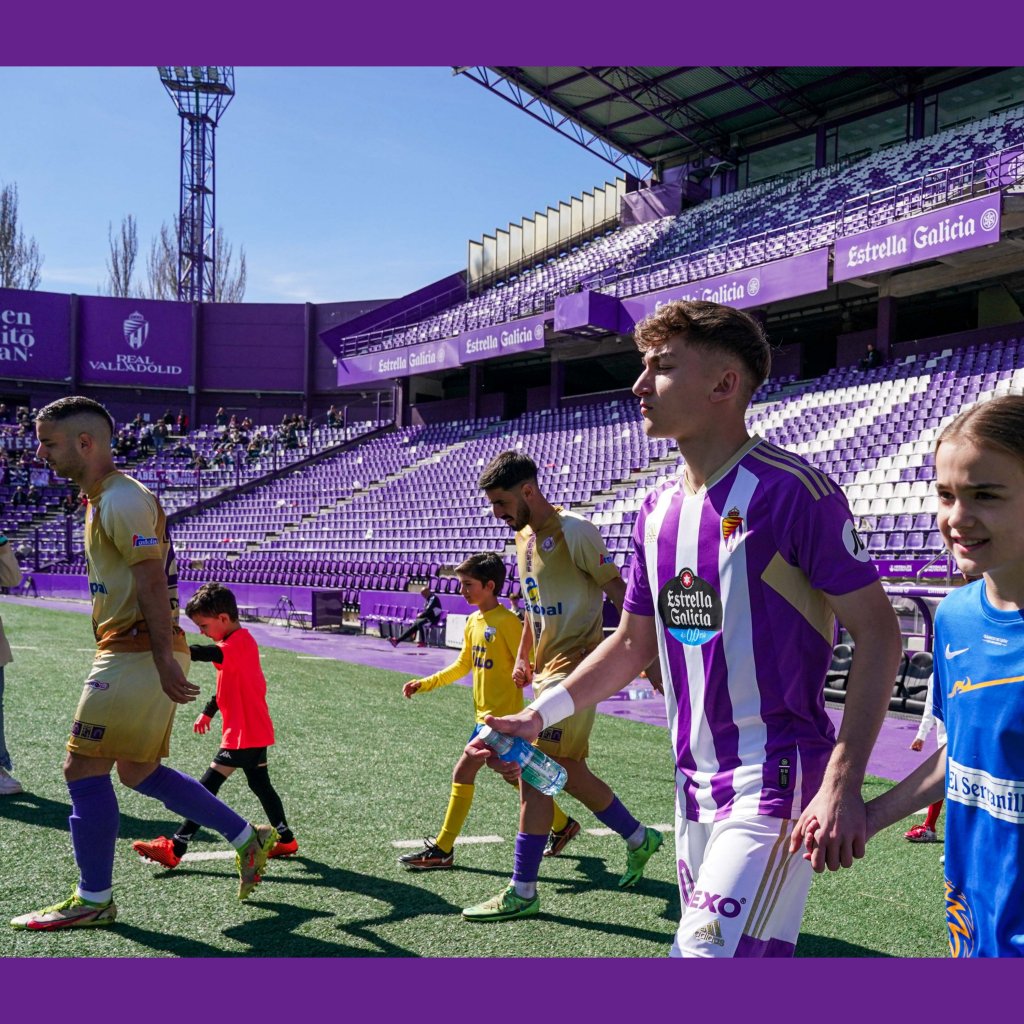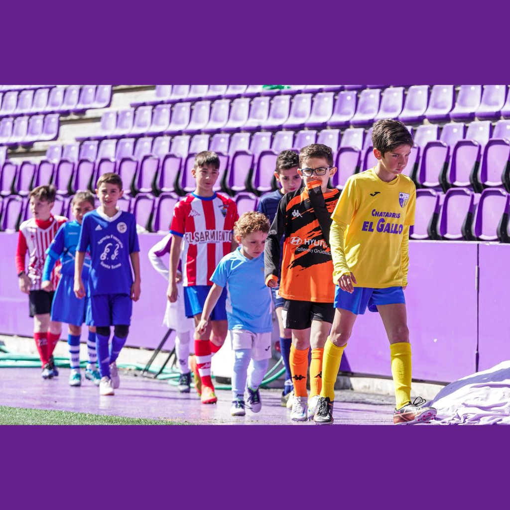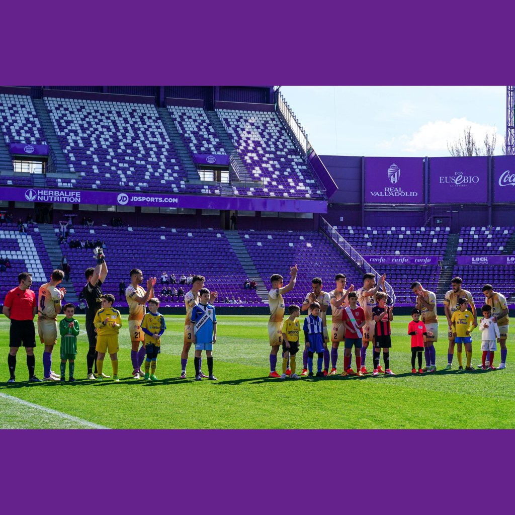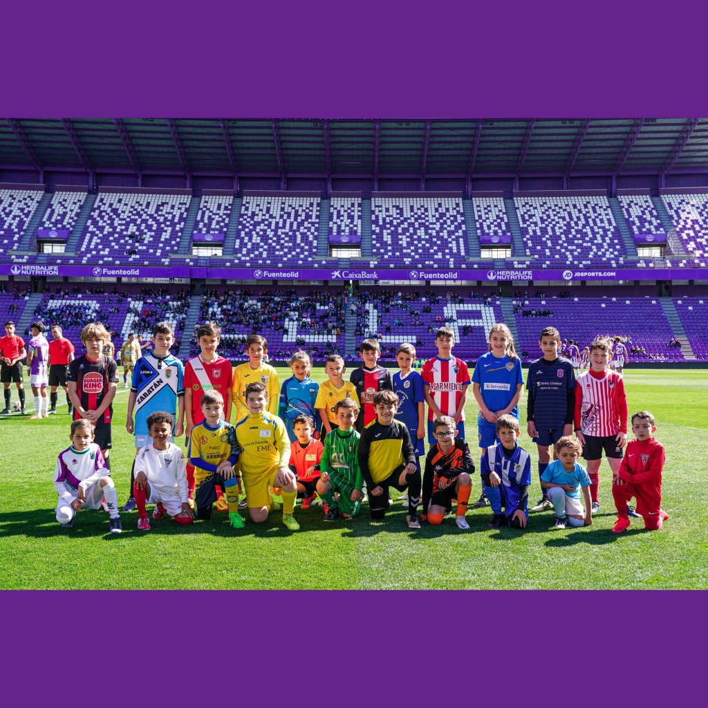 Nuestro jugador Alevín HUGO MARTÍN, junto con jugadores de otros equipos, salieron de la mano de jugadores del Promesas y del Palencia Cristo Atlético en el Estadio José Zorrilla en partido de Liga jugado el pasado domingo 19 de marzo.