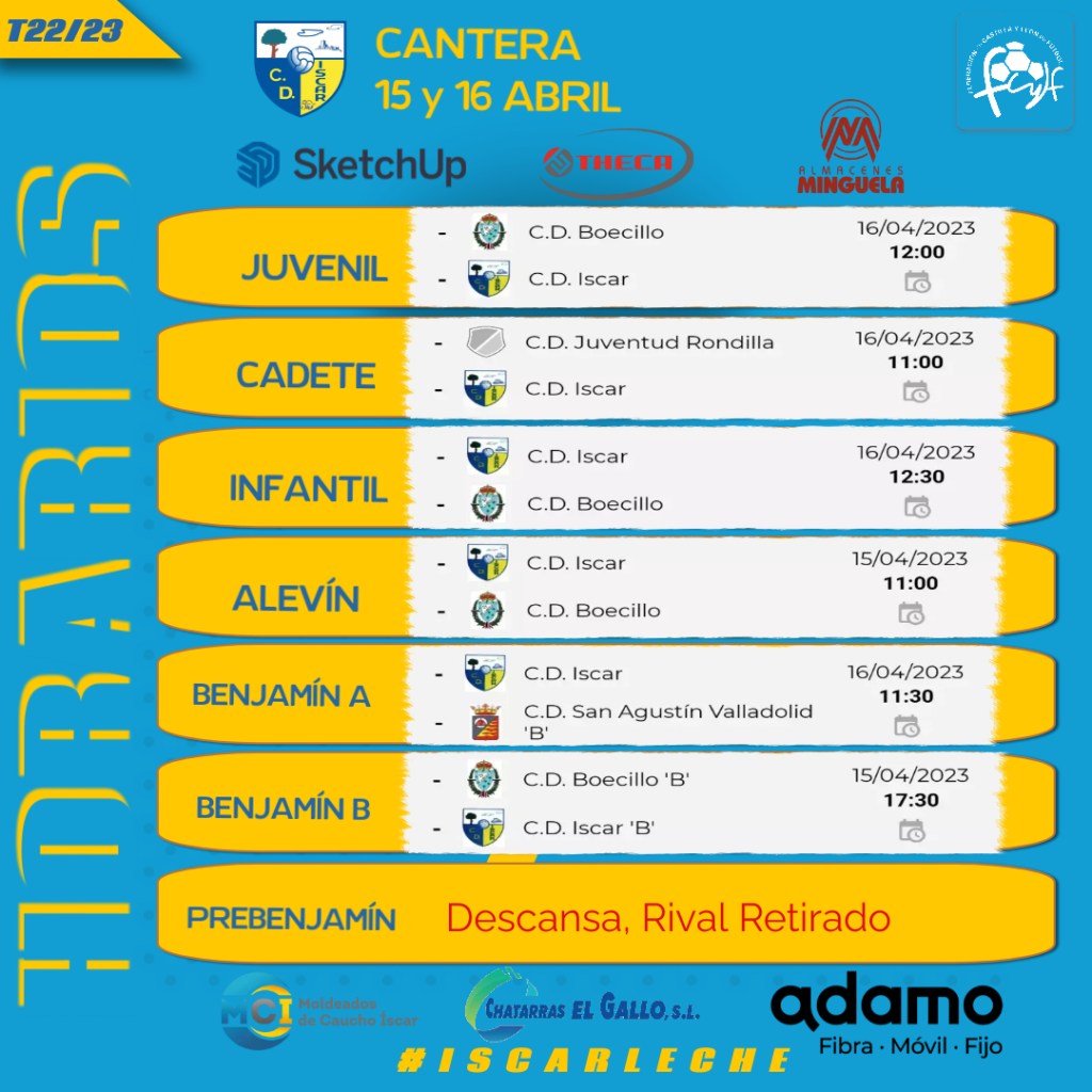 Tras el largo parón de Semana Santa las competiciones de fútbol base provinciales encaran su recta final y está jornada tenemos un curioso cuádruple enfrentamiento contra el CD Boecillo: en categoría Juvenil, Infantil, Alevín y Benjamín (B).