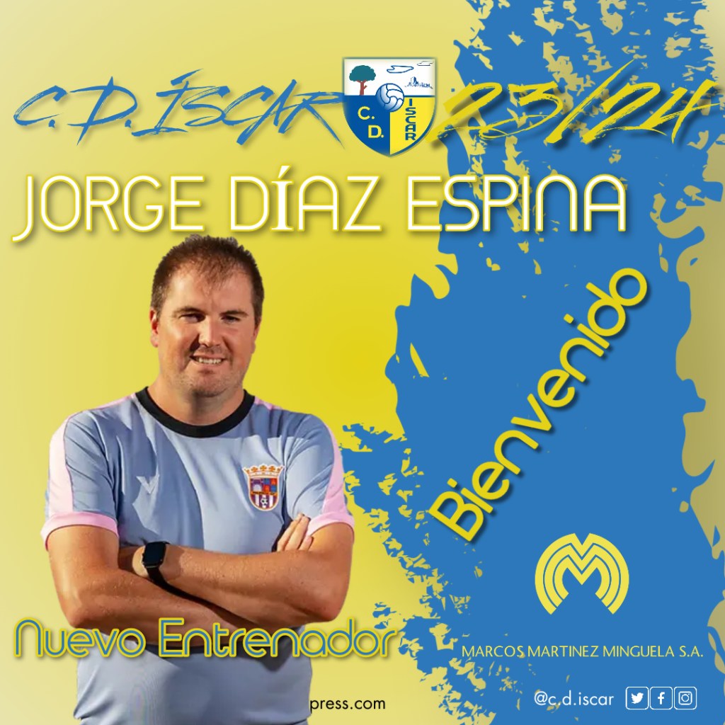El Club Deportivo Íscar tiene el placer de comunicar que JORGE DIAZ ESPINA es el nuevo entrenador de nuestro equipo Aficionado para esta temporada 2023/2024 y para las 2 siguientes en un proyecto de 3 años.