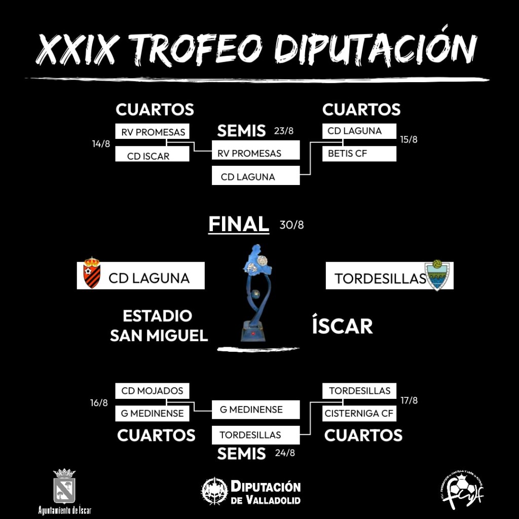 Club Deportivo Laguna y Atlético Tordesillas disputarán el día 30 de agosto la gran Final de la edición de 2023 del Trofeo Diputación de Valladolid tras vencer, respectivamente, a Real Valladolid Promesas y Gimnástica Medinense en semifinales.