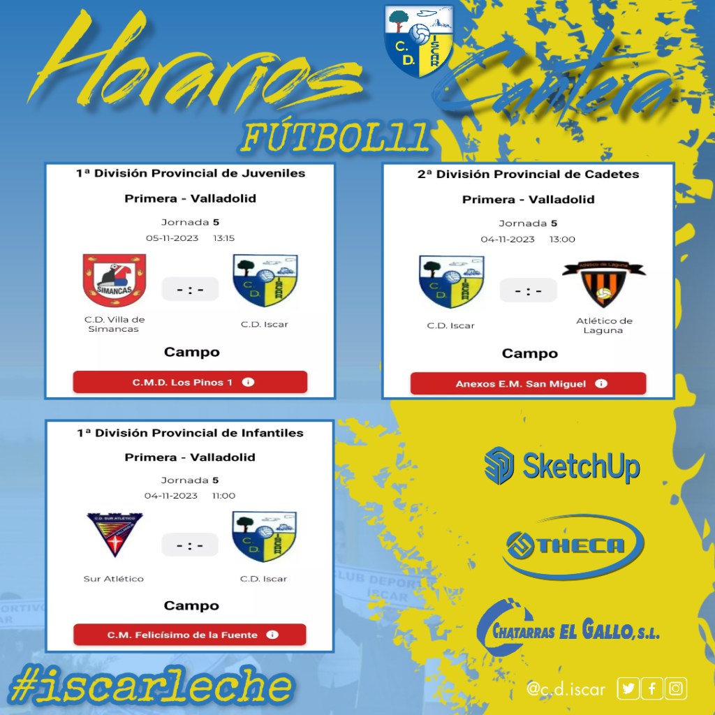 Horarios de los partidos que jugarán nuestros canteranos este próximo fin de semana, 4 y 5 de noviembre, que corresponden a la 5ª jornada de Liga