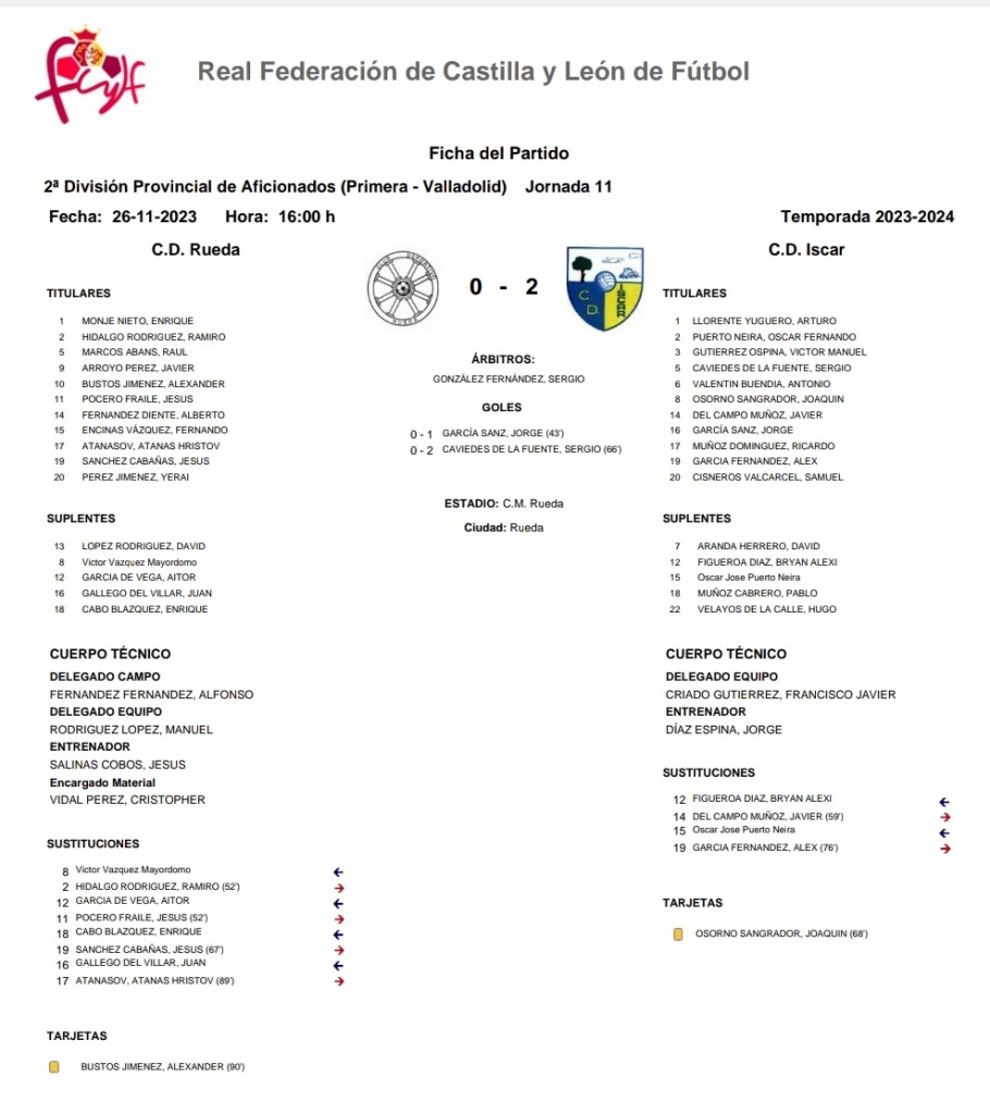 El Iscar alcanza los 20 puntos y se sitúa 4° solo por detrás de San Miguel Olmedo (21),Atlético Laguna (22) y Rueda (26).