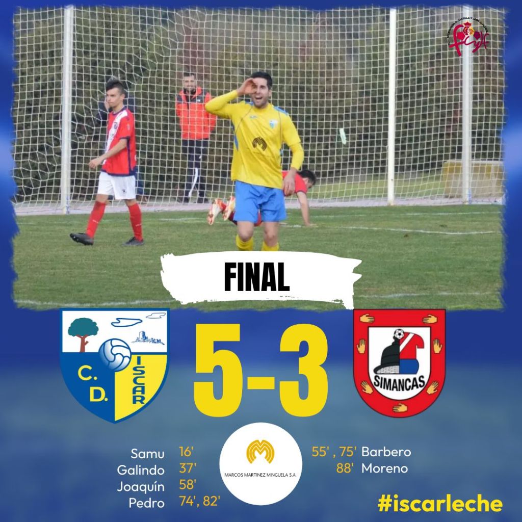 El Iscar volvió a vencer al Simancas como en la primera vuelta, en un bonito partido repleto de goles. En los 2 partidos jugados entre ambos equipos esta temporada se han marcado 18 goles, 7 el Simancas y 11 el Iscar y 8 de ellos de Pedro.
