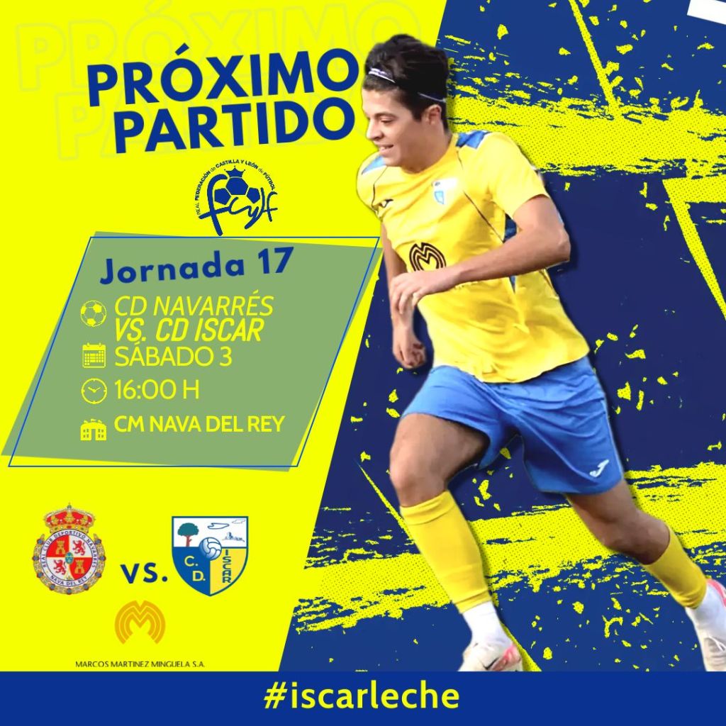Difícil salida del C.D. Iscar para este sábado en el que visita al C.D. Navarrés en Nava del Rey. Un rival duro que ya sacó un empate en el partido de la primera vuelta jugado en San Miguel. El Iscar defiende su 2° puesto con 32 puntos, mientras el Navarrés es 8° con 22.