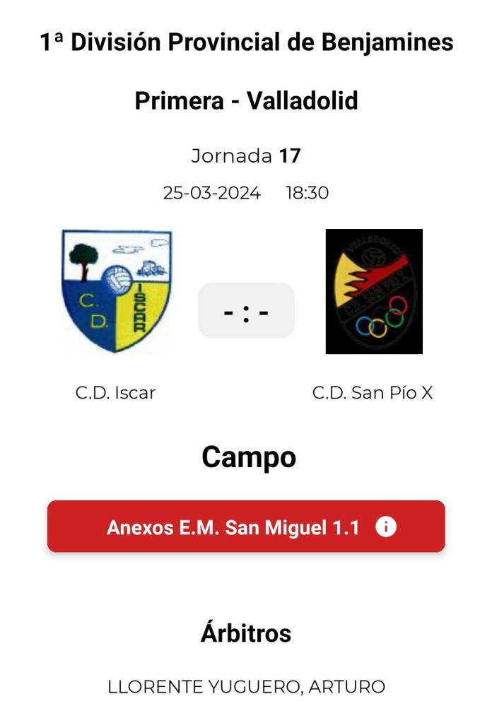 El Prebenjamín jugará a las 17:00 contra el Belén y el Benjamín A a las 18:30 contra el San Pío X, en los anexos de San Miguel.
