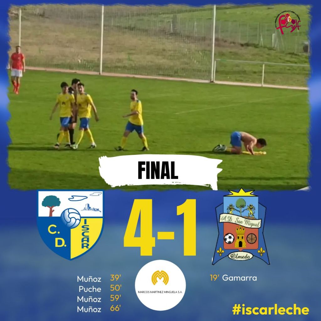 Tras el descanso el Iscar salió en tromba, presionando aún más y aunque consiguió el 2-1 con mucha fortuna en el 50′, poco después en el 59′ lograría el 3-1 por medio de Muñoz, con celebración especial, y en el 66′ el 4-1 y el tercero de Muñoz en su día especial.
