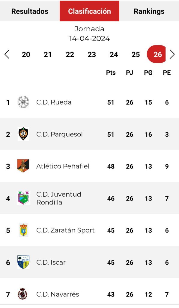 Clasificación tras la 26ª jornada