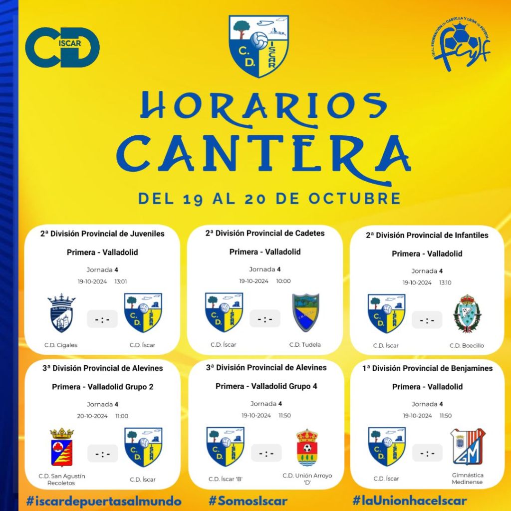 Estos son los horarios de los partidos que jugarán nuestros equipos de la Cantera este fin de semana, 19 y 20 de octubre